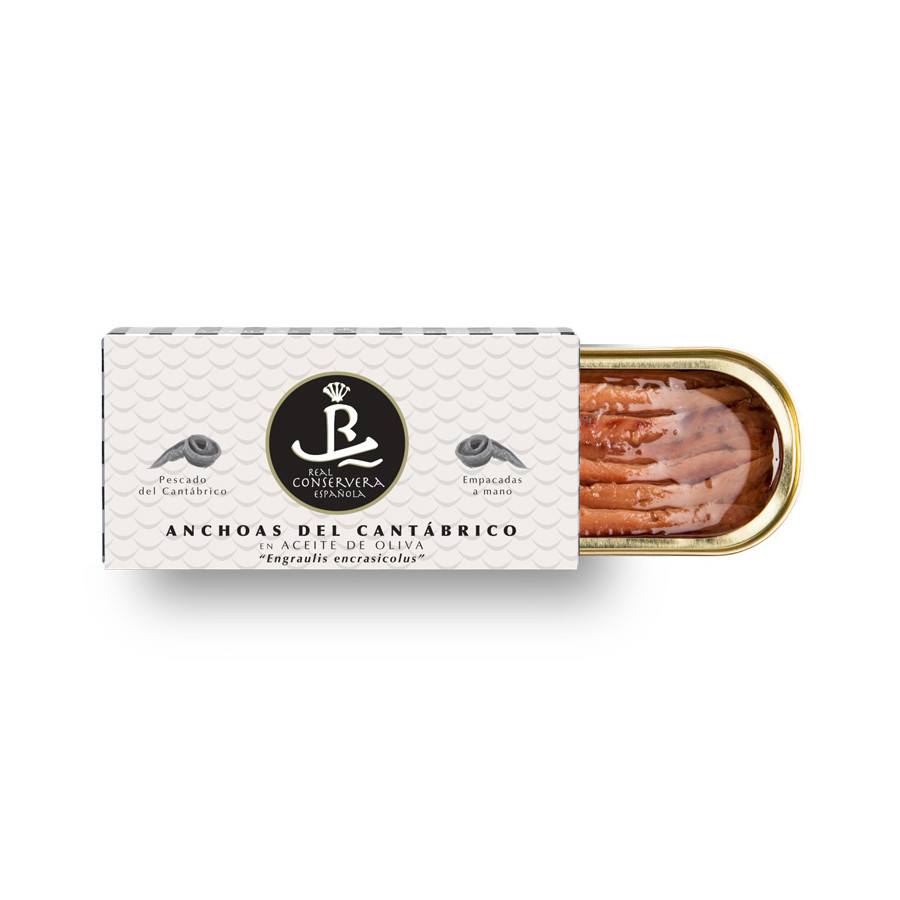 As anchovas da Real Conservera Española são provenientes das ricas costas do Mar Cantábrico. Estas anchovas são pescadas durante a Primavera Litoral e, após seis meses de maturação em salga, transformam-se numa conserva perfeita a degustar.